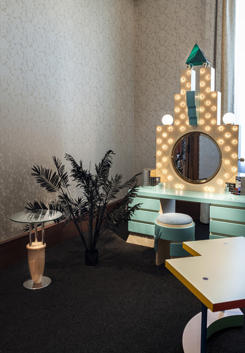 In occasione della Biennale di Architettura di Venezia 2018, un allestimento che esalta l'irriverenza intriseca di Memphis riplasmando la pianta di Palazzo Franchetti attraverso la geometria del Carlton, iconica libreria del 1981 autografata Ettore Sottssass. Curato da Jean Blanchaert e Adriano Berengo.