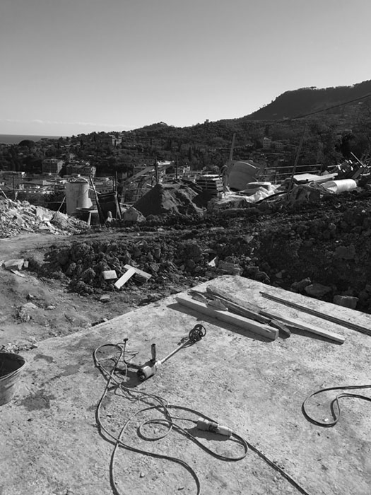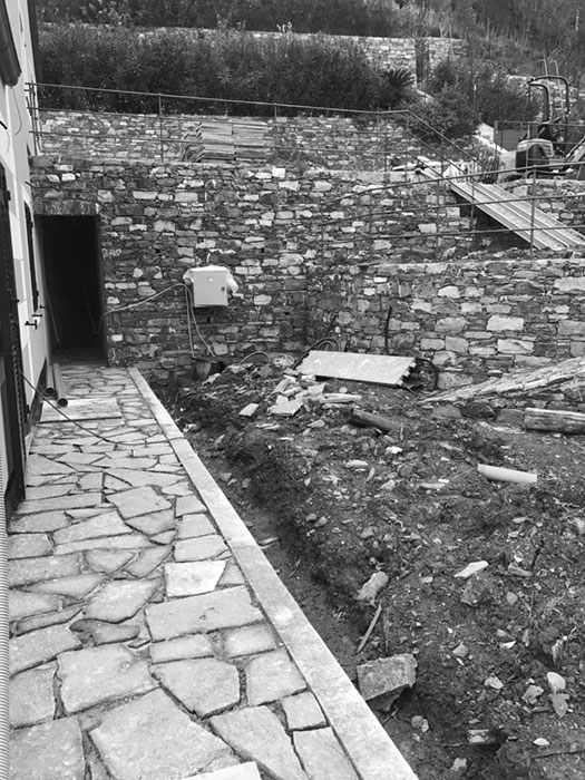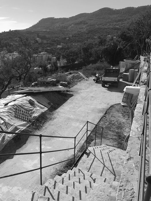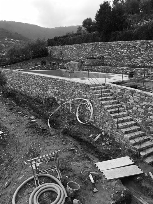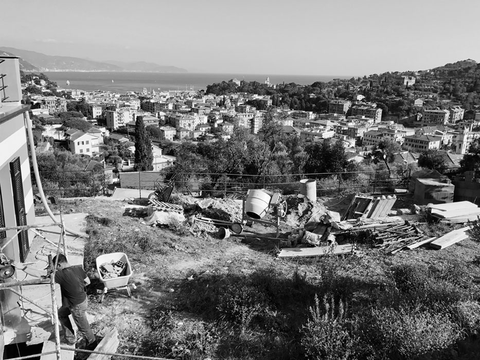 Da un anonimo involucro edilizio di recente costruzione prende vita un’ampia villa di campagna su più livelli, adagiata nel paesaggio magico del Golfo del Tigullio, con giardino articolato su terrazze degradanti